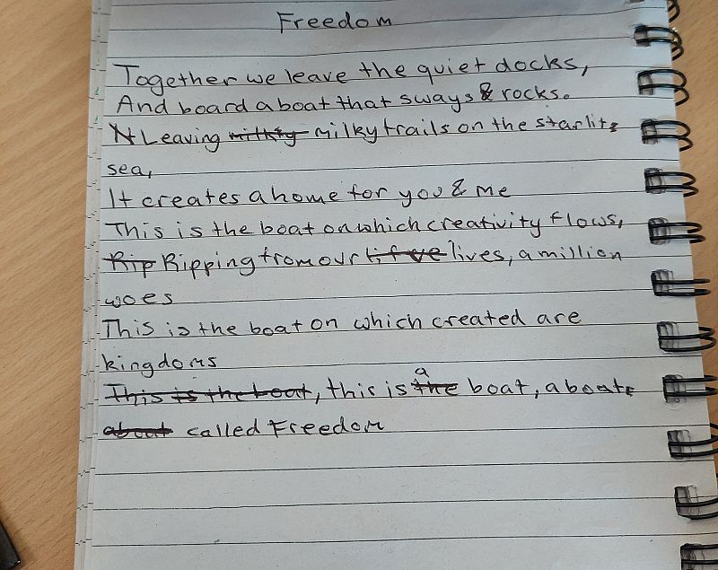 freedom themed prompts. Rohan tasked the writers with exploring the idea of a