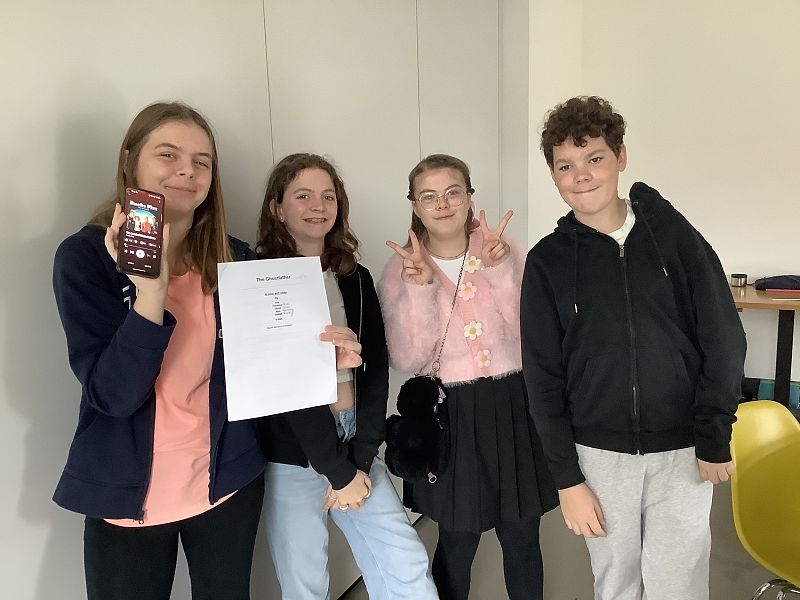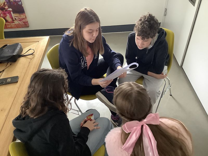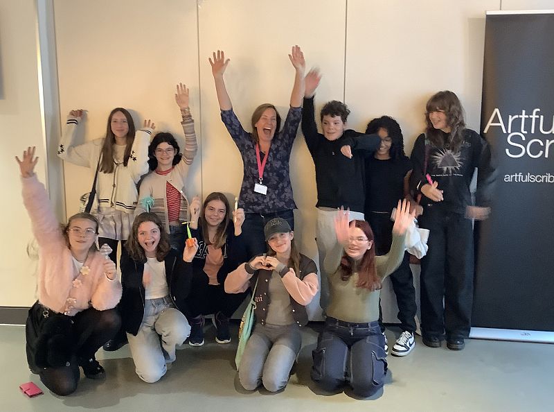 The Junior and Young Writers acted out their scripts and enjoyed bringing their hard work to life. Zena offered dramatic sound effects, with her background knocking and spine-chilling screaming being particularly effective. There was also music thrown in, such as YMCA for the Junior Writers and a rewrite of Coldplay’s Yellow, to fit with the organ harvesting for The Psychopath Next Door. As a group, with little prompting, we performed angelic harmonies when required. There was applause for everyone, but especially for Ali, who had worked on the scripts in between sessions to help bring the writer’s ideas to fruition.