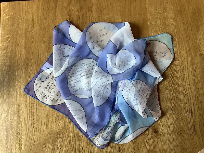 They gave me flowers, cards and chocolates, but something else that I was deeply touched by and will treasure forever: a scarf with personal messages from them all. They wrote notes such as ‘It takes a big heart to shape young minds’, ‘You joining this club was the best choice ever’, along with a reminder that Ali and I will end up retired off to the Isle of Wight!