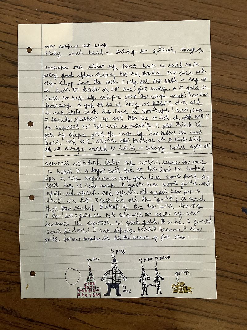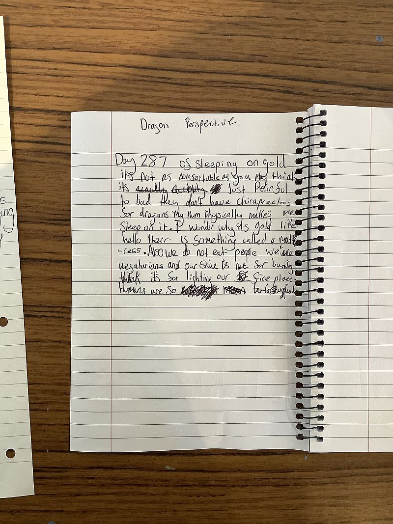 For our second gold-loving magical creature, we encountered a dragon. Once again, we wrote either from the perspective of someone discovering the dragon or from the dragon’s own point of view.