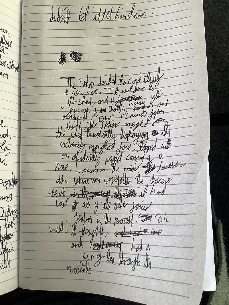 For our third and final writing exercise, we met a golden sphinx, brimming with riddles.